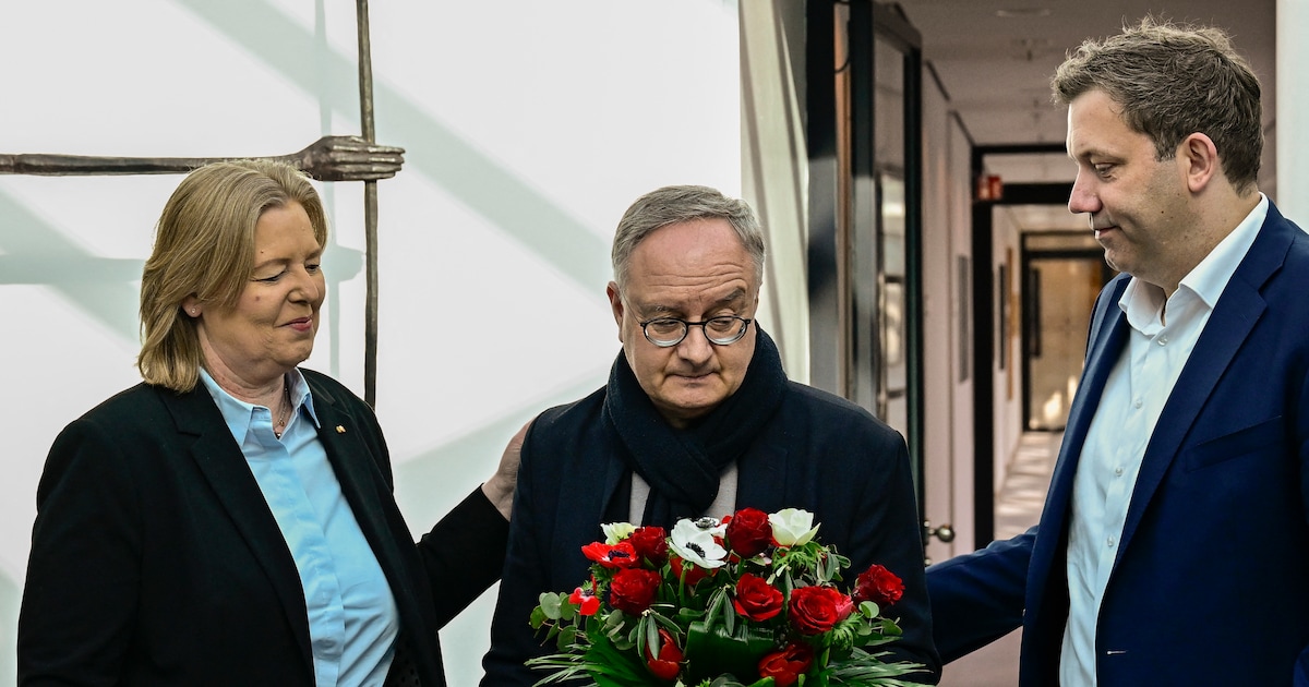 The party leadership is visibly affected. The image by photographer Tobias Schwarz captures this moment: Bärbel Bas and Lars Klingbeil present the visibly shaken top candidate Andreas Stoch with a red and white bouquet of flowers. With their heads bowed and a smile forced with effort, all three look at the flowers as if they were not standing in front of a stage but at a grave.