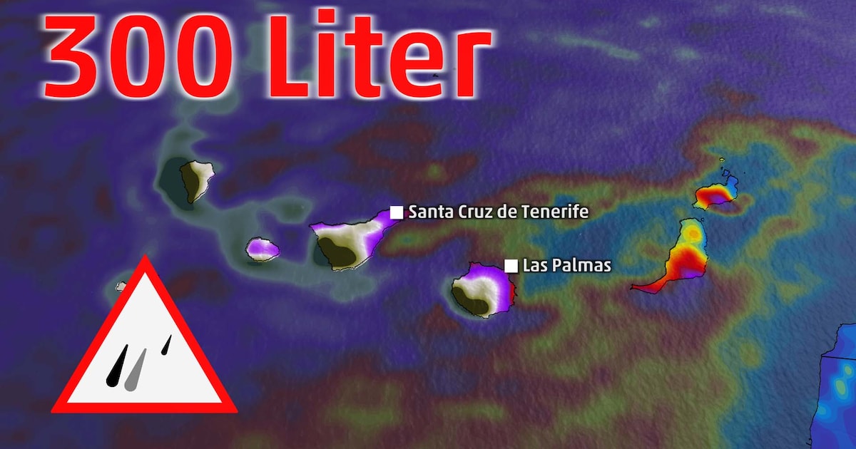 An extraordinary storm is now threatening the Canary Islands. Up to 300 liters of rain are forecast.